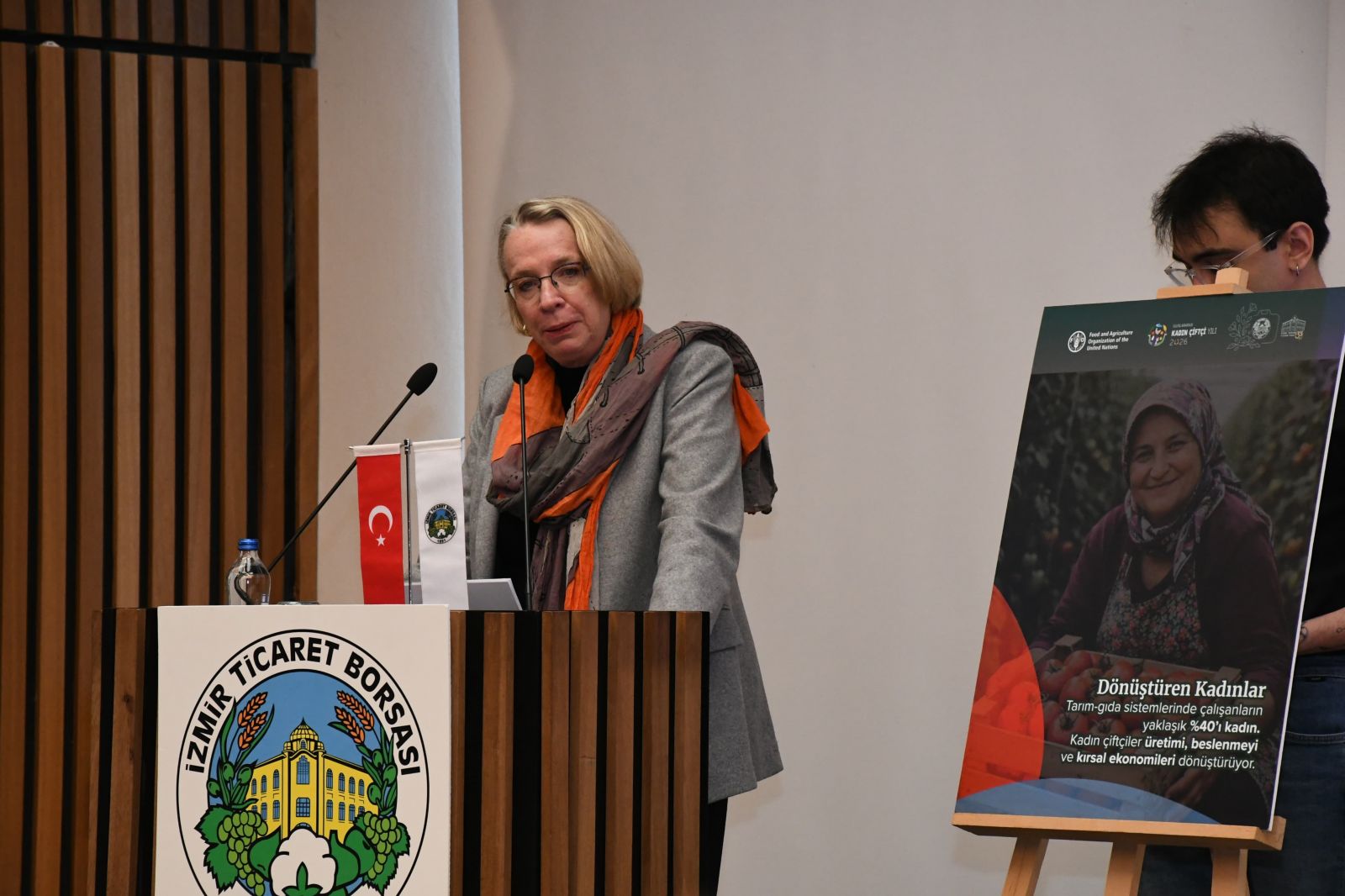 Yönetim Kurulu Başkanımız Işınsu Kestelli, T.C. Tarım ve Orman Bakanlığı İzmir Tarım ve Orman İl Müdürü Kahraman Akdoğan, UN Women Türkiye Ülke Direktörü Maryse Guimond, FAO Türkiye Temsilci Yardımcısı Ayşegül Selışık'ın açılış konuşmalarını yaptığı etkinliğin panel bölümünde emeğe değer katan kadın çiftçiler meslek ve deneyim öykülerini katılımcılarla paylaştı.